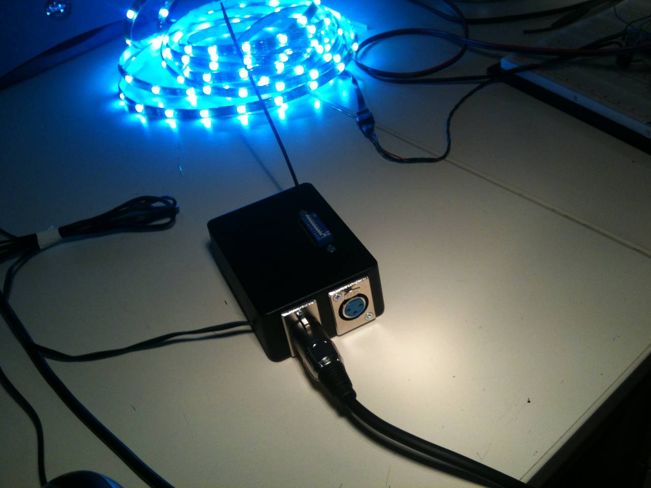 - Die Empfänger steuern einen 12V RGB-LED Strip an