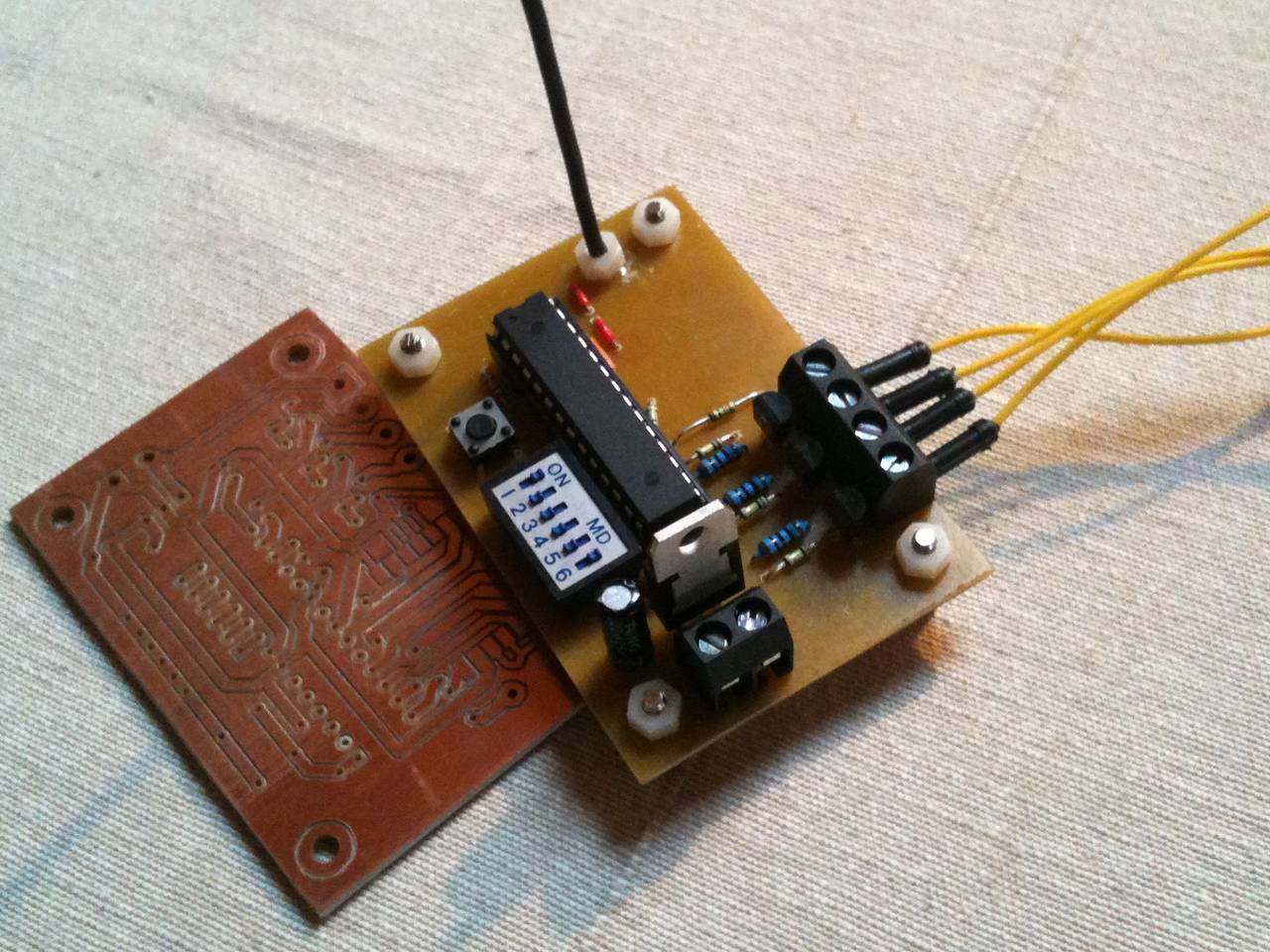 Bauteile: ATMega328P + SN7517 + RFM12 + Dip-Schalter