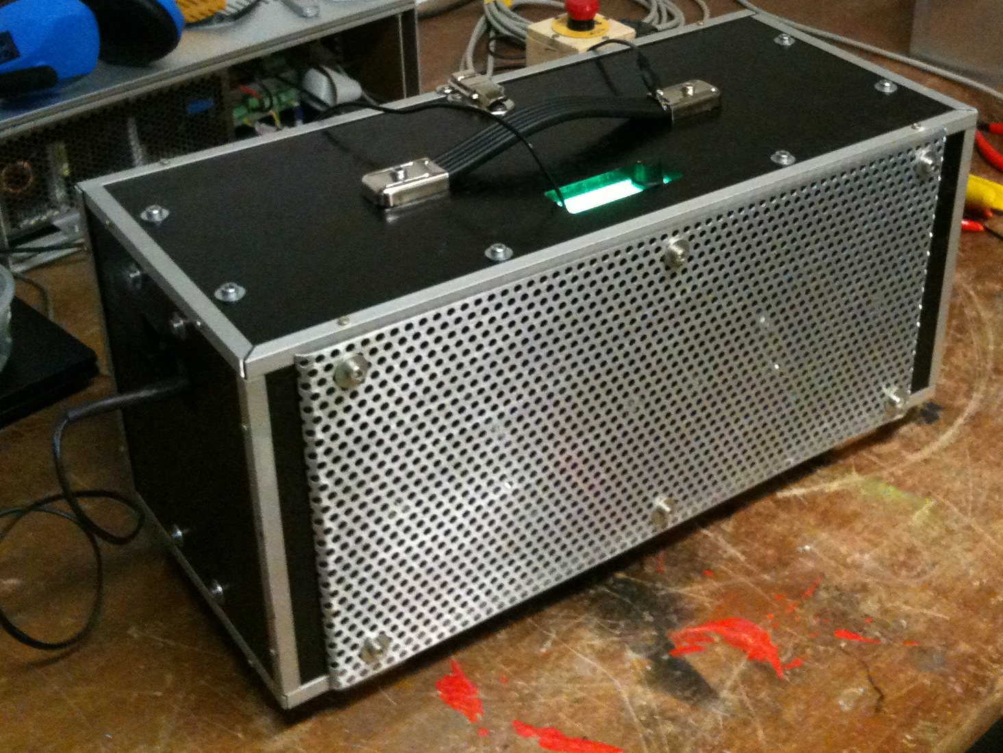 - Eigenbau aus MDF Platten (innen mit Alu Profilen verschraubt)