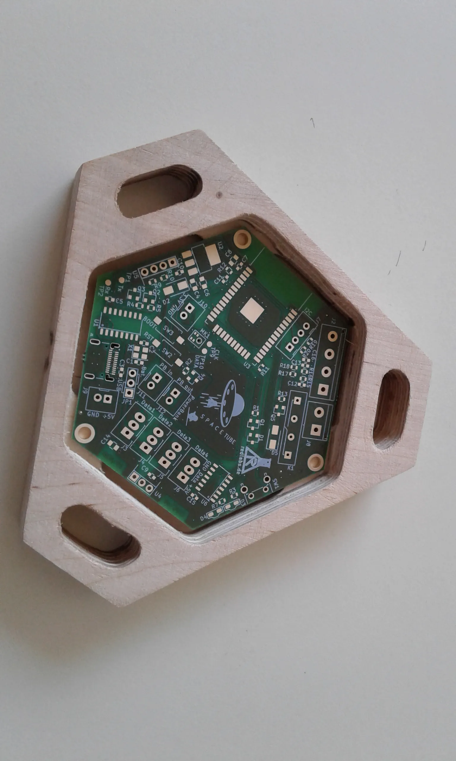Die PCB das erste mal in der gefrästen Halbschale.